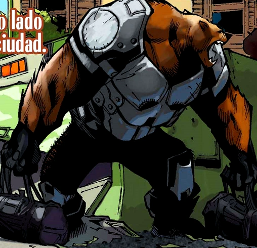 - Traje de Bruin: Un exoesqueleto en forma de traje de oso que le proporciona fuerza sobrehumana.
