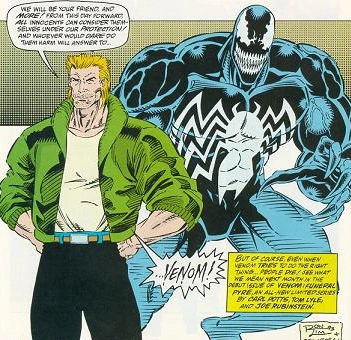 En un momento dado, Spider-Man salvo la vida de Ana Weying, la ex esposa de Eddie, de ser asesinada por el Sin-Eater, esto provocó un cambio de emociones en Eddie, quien ahora estaba en deuda con Spider-Man, tras ese momento, Spider-Man y Venom dejaron de lado sus diferencias y Eddie partió a la ciudad de San Francisco, donde inició su carrera como vigilante en un intento de purgar su pasado.