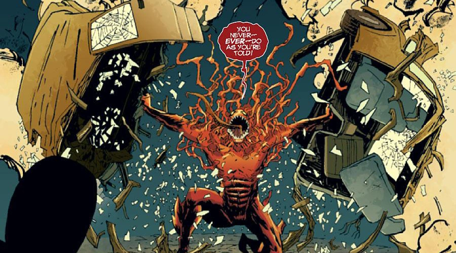 Durante una batalla con Carnage, Venom descubrió que este pronto tendría descendía y le explicó el proceso de parto a su némesis, Carnage estaba disgustado por su condición y huyó, cuando estaba a punto de engendrar a otro simbionte, se sintió amenazado por su existencia y trató de destruirlo. Venom sin embargo, quería criar y entrenar al nuevo simbionte como un aliado. Debilitado por el nacimiento, Carnage fue incapaz de matar al recién nacido.