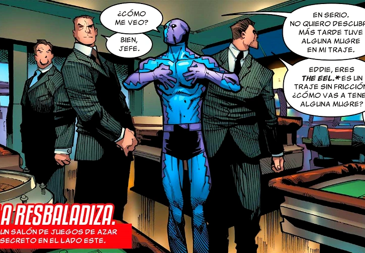 - Sentido de Radar: Eel puede generar un campo eléctrico alrededor de su traje que funciona como un sentido de radar, lo que le permite detectar automáticamente la presencia de cualquier persona dentro de su área inmediata.