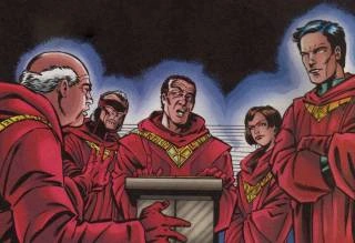 Finalmente el ritual tuvo lugar en el interior de Industrias Osborn. La Reunión de los Cinco formada por Norman Osborn, Morris Maxwell, Madame Web, Martha Franklin y Gregory Herd se reunió y empezaron la ceremonia. Después de que Maxwell se asegurara de que todos participaban por su propia voluntad y conocían los riesgos, Norman colocó el eje. La primera en poner su fragmento fue Madame Web, quien cayó al suelo sin pulso, por lo que dedujeron que había recibido el don de la Muerte, el siguiente fue Mattie quien notó un ligero mareo, así que pensaron que había obtenido el Conocimiento, entonces le llegó el turno a Herd que sintió como si las células de su cuerpo estallaran y luego una gran calma, así que creyeron que había recibido la Inmortalidad. Maxwell puso su fragmento y sintió un fuerte dolor de cabeza y cayó al suelo sacando espuma por la boca, así que Norman pensó que suya era la Locura y puso su piedra pensando que obtendría el Poder.