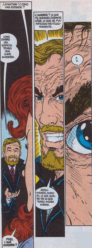 Ya en la fiesta, Jon vio próxima la oportunidad de acercarse a Mary Jane, cuando se enteró que en los próximos días Peter tenía que ir a Chicago, siguiendo con la promoción de su libro, y ella tenía que quedarse en la gran manzana para una sesión de fotos. Por fin estaría sola. Parker se mostró celoso por la excesiva atención que Jonathan le prestaba a su mujer, pero ella le tranquilizó y le aseguró que Jon no suponía ningún peligro y que podía marchar tranquilo de viaje. Cuando la pelirroja volvió del trabajo, se encontró con Caesar y dos de sus secuaces en su vivienda. Como dueño del edificio tenía una llave maestra, y le confiesa que durante años lo ha estado planificando meticulosamente.