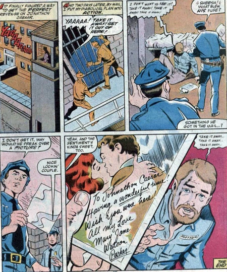 Caesar se llevó una tremenda sorpresa cuando en un momento dado ve a Spider-Man acercarse al edificio donde residía y tenía secuestrada a la joven. Desconocía que el trepa-muros vivía allí, e interpretó que había localizado su escondite. Los villanos contratados salieron al encuentro de un sorprendido cabeza de red para hacerle frente. Mientras tanto, MJ no se queda de brazos cruzados y logra noquear de un golpe a Jon, con ayuda de una lámpara. En este su segundo intento de escape, la muchacha tuvo más éxito que en la anterior y gracias al agua que había en el suelo y a la lámpara rota, proporcionó una descarga eléctrica a los esbirros de Jonathan, que cayeron fulminados. Por fin logró escapar y Jonathan Caesar fue detenido.