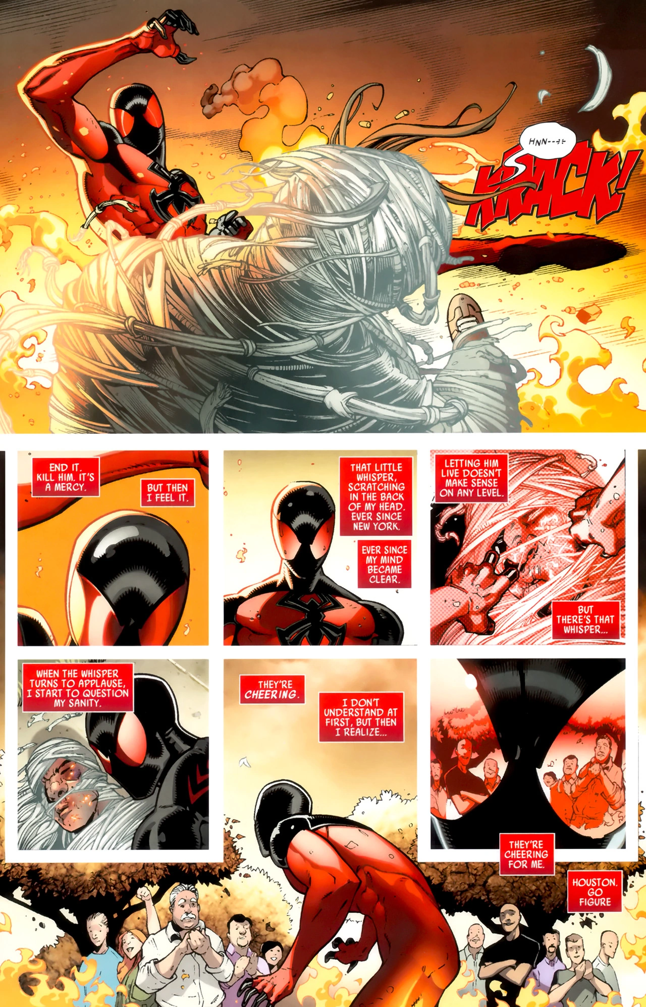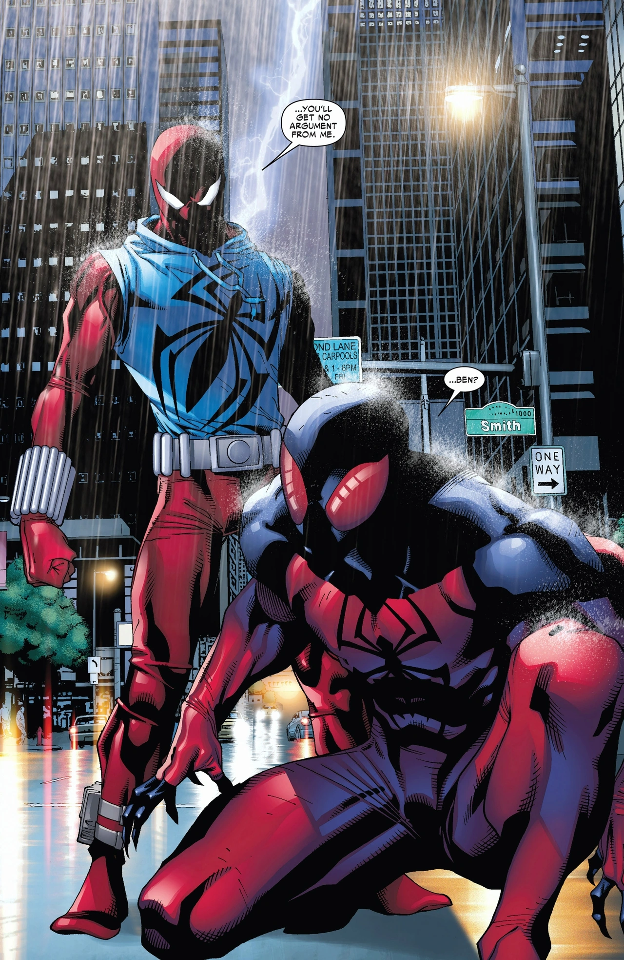 Durante una de sus patrullas por la ciudad, Kaine se detiene para ayudar a un grupo de personas atrapadas en un edificio en llamas. Al entrar se encuentra con muchos cadáveres los cuales fueron asesinados por alguien "que lo disfrutó". Scarlet Spider encuentra a un hombre todavía vivo que por alguna razón está visiblemente aterrorizado de Kaine.