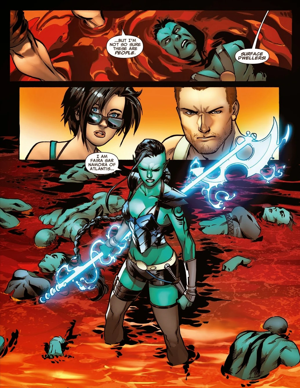 Más tarde, en Mazatlán (México), Kaine se convierte en Scarlet Spider para ayudarle a Aracely a salvar algunos turistas de unos asaltantes. Después de eso, mientras se relajan en la playa y discuten sobre la vida, los poderes y la responsabilidad que conllevan, los dos ven sangre en el agua, al explorar más a fondo se encuentran los cuerpos de Atlantes y Desviants masacrados. Del mar también emerge una chica de piel azul que revela su identidad como Faira Sar Namora (Water Snake) y que está en busca de héroes.