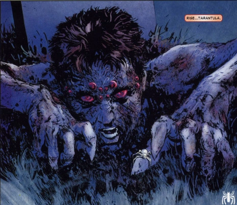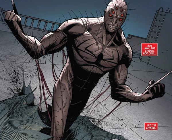 Después de los acontecimientos de la Cacería Macabra, Kaine fue enterrado por Peter, pero más tarde fue visto resucitando de entre los muertos con características mutadas, entonces Kaine fue encontrado y alterado aún más por el Jackal en una criatura similar a una tarántula, con su cara parecida a la de una araña, y cuatro patas de arácnidas creciendo de su espalda.