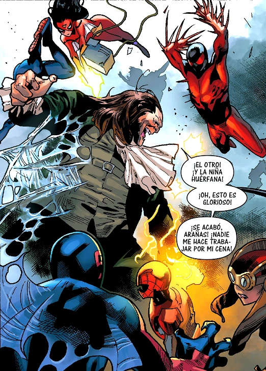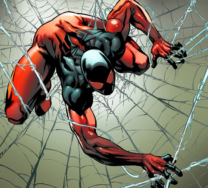 Scarlet Spider escapando gracias a su habilidad con las arañas