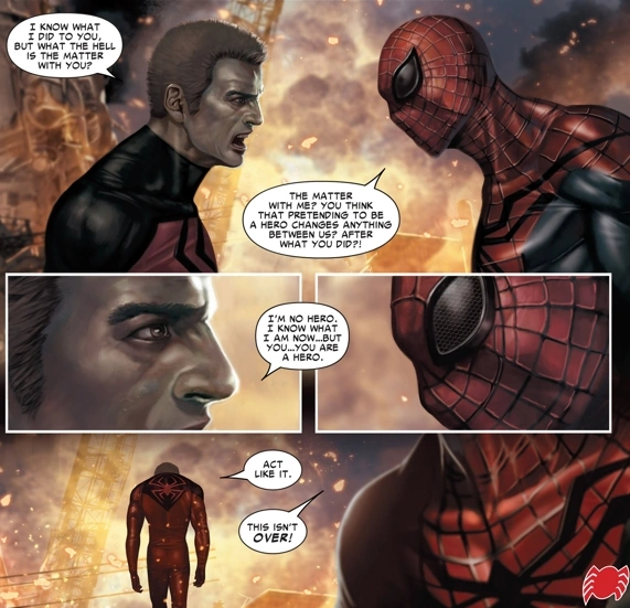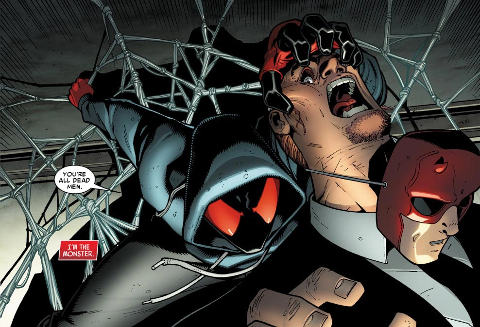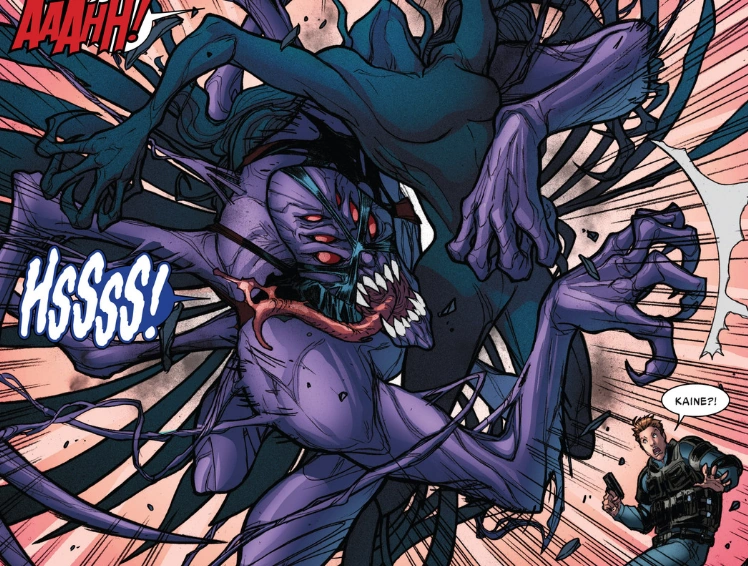 Mientras lucha contra ellos, Kaine piensa en su interior que aún es un monstruo que solo ha conocido el dolor y violencia, pero luego comienza a pensar que esta vez las cosas pueden ser diferentes. Una vez aclara sus ideas vence al resto de malhechores excepto al líder. Kaine se le acerca lentamente y sabe que matarlo sería la cosa más natural del mundo, sin embargo toma una decisión diferente. Los policías luego irrumpen en la habitación sólo para encontrar a los ladrones amarrados al techo con telarañas.