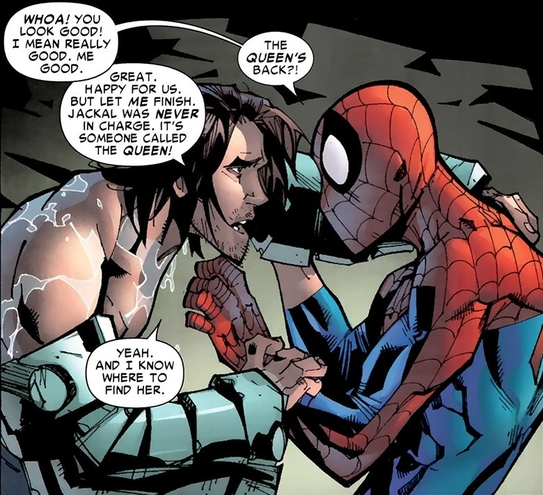 Kaine que ya había sido capturado por el Jackal y transformado en una araña humanoide bajo el nombre de Tarántula, fue controlado fácilmente por la Reina. Eventualmente se le ordeno asesinar a Spider-Man, en su enfrentamiento final, Peter lo arrojó en un tanque lleno de "la cura", una concentración del simbionte Anti-Venom, que fue pensada para ayudar a sanar la mutación arácnida propagada en Nueva York. La cura hizo más que volver Kaine a la normalidad, también estabilizó su ADN y lo hizo un clon perfecto de Peter Parker, similar a Ben Reilly.