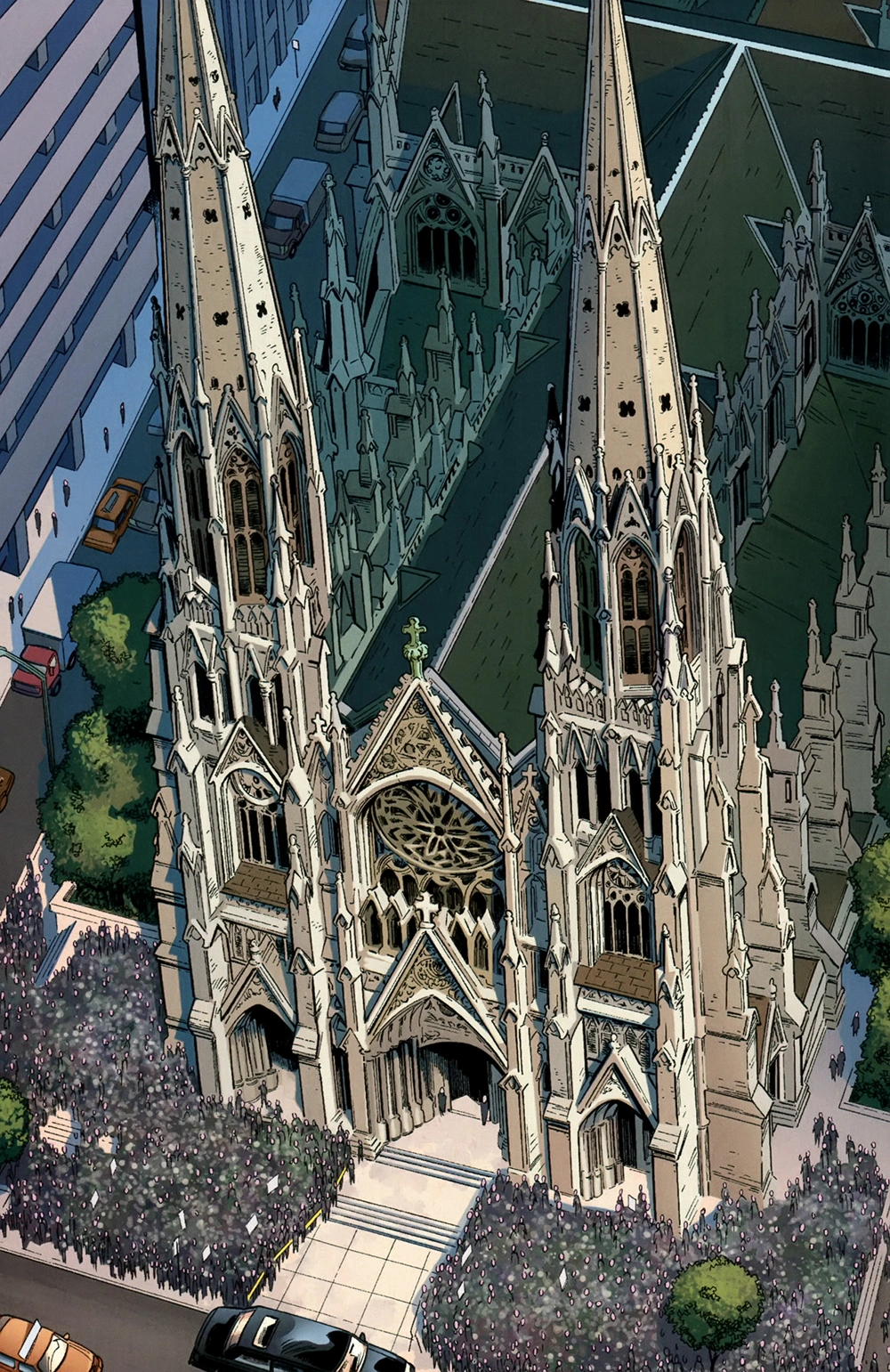 Tras llegar a casa de su tía en Queens, Peter les avisa de lo sucedido a Gwen y May, las cuales evacuan la casa para estar a salvo. Mientras Peter busca a Norman y a su grupo a través de Nueva York, MJ lo llama de nuevo y le avisa que vio a Norman matar a Otto Octavius en una pelea, Spider-Man llega al lugar y ve horrorizado el cadáver de Octavius. Sin perder tiempo sigue buscando y esta vez llega al Puente de Queensboro donde vio al Punisher apuntando con su rifle de francotirador al Capitán América. Peter valientemente se balancea y empuja al Cap fuera del camino, tomando la bala en su lugar.