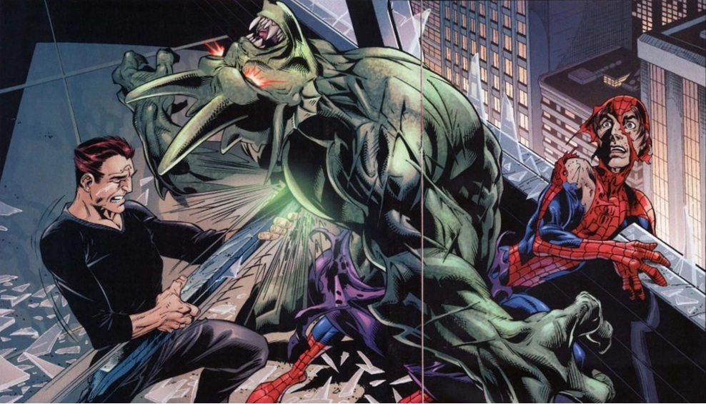 Herido con una lucha de un demente que se hacía llamar el Gladiador y había tomado varios rehenes en un museo de la ciudad, Peter fue a buscar al Doctor Conners, para que éste le cosiese unas heridas. Descubriendo unas asombrosas propiedades en restos de su sangre, Conners le pidió permiso para investigar a partir de ellas, creando en tan sólo dos meses de investigación un organismo autorreplicante (creado sin necesidad de matriz) a partir de la sangre de Parker, mezclada con restos del Proyecto: Venom y con su propia sangre modificada genéticamente. Para entonces, Spider-Man se había enfrentado de nuevo con el Punisher y un ladrón de bancos que se hacía llamar Boomerang.