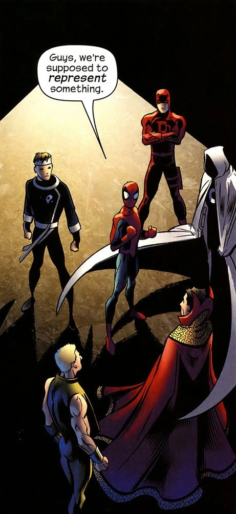 Eventualmente, la Tierra se vio invadida por el alienígena Thanos, que comandaba el todopoderoso Cubo Cósmico. Distintos héroes, incluido Spider-Man, intentaron oponerse a él brevemente, pero fueron derrotados y convertidos en reflejos oscuros de sí mismos a las órdenes de Thanos, atacando sus objetivos hasta que este fue derrotado por los Cuatro Fantásticos.