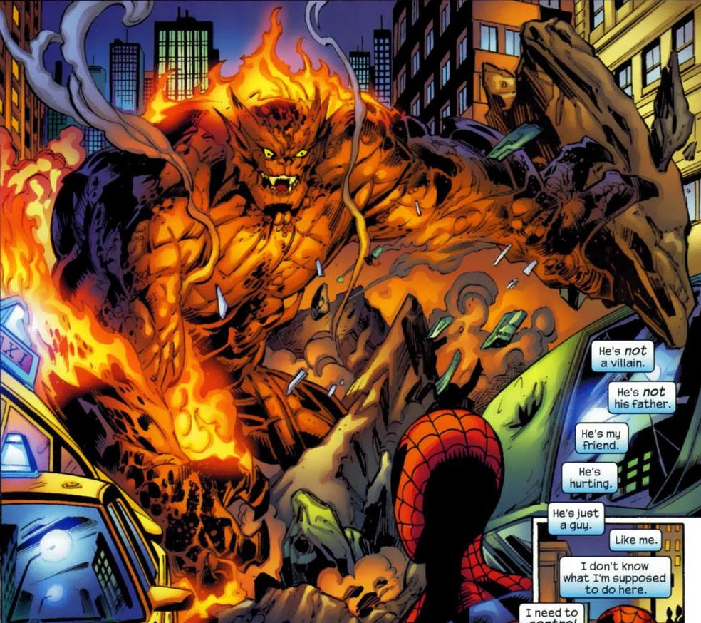 Cuando Peter y los demás llegaron a la casa Parker. Bobby ya había neutralizado la amenaza. La criatura logró liberarse y golpeó a Ben con una explosión de energía. Cuando Ben se recuperó, encontró con que más piedras se habían caído de su cuerpo y comenzó a brillar con una luz blanca. Sue logró contener a la criatura en una burbuja de fuerza hasta que Carol Danvers y los agentes de S.H.I.E.L.D. llegaron al lugar.