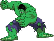 - Hulk/Bruce Banner: es un monstruo incomprendido y el otro yo de Bruce Banner, forzado a una vida de ser siempre perseguido por las las fuerzas militares y a luchar con el siempre vigilante General Ross. Su alter ego, Bruce Banner, decidió no deshacerse de Hulk después de hablar con él y llegar a creer que hay un lugar para Hulk en el mundo. Dejó el equipo, pero más tarde se reincorporó tras detener al Líder y sus planes de expandir la radiación Gamma en el mundo. Su frase más conocida es "¡Hulk es el más fuerte que existe!", generalmente seguido de una demostración de esa afirmación.