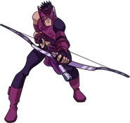 - Hawkeye/Clint Barton: es un ex agente de S.H.I.E.L.D. Barton fue aparentemente traicionado por su ex-compañera, la Viuda Negra. Empeñado en limpiar su nombre, se une a Los Vengadores para luchar contra el mal y exponer a la Viuda Negra como una doble agente.